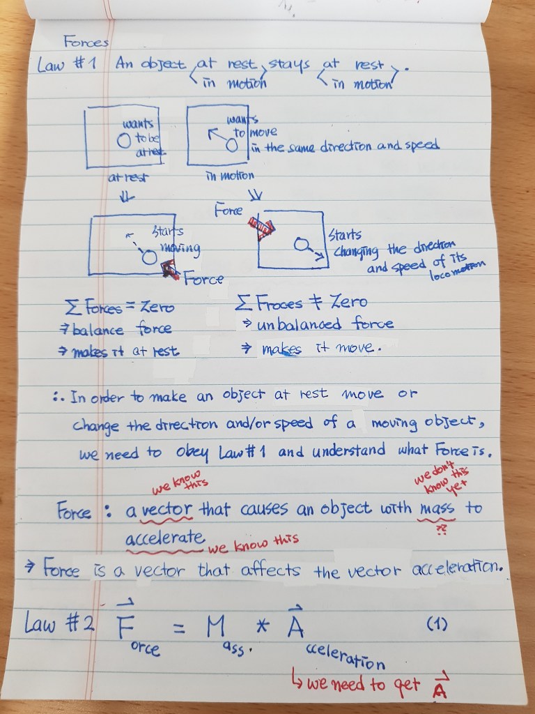Force Law #1: 가만히 있는 물체는 가만히 있으려고 하고 움직이는 물체는 같은 방향과 속도로 계속 움직이려고 합니다.