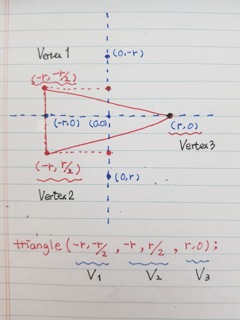 //원점을 중심으로 (-r, -r/2) (-r, r/2)(r,0) 좌표값을 가진 세 꼭지점으로 이루어진 날씬한 삼각형을 그립니다.