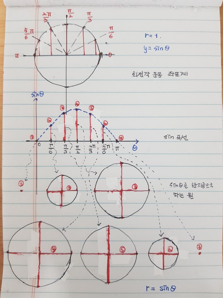 이제, sin(회전각 크기)를 반지름으로 갖는 원을 그려보겠습니다.