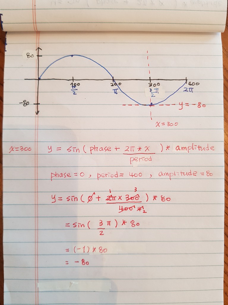 하나. (1) phase = 0 파이, (2) period = 400 픽셀, (3) amplitude = 80 픽셀