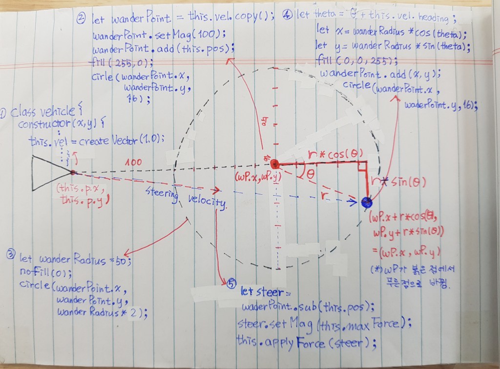 하나. vehicle이 푸른점(wanderPoint)에게 가장 빨리 다가갈 수 있는 velocity를 구한 후~^^*