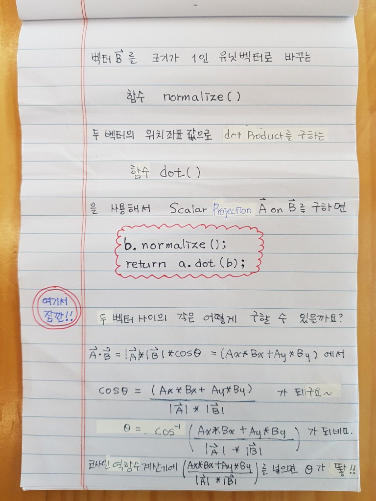 벡터의 Dot Product와 그림자 길이 Scalar Project의 관계성에 대해 복습을 하면서 핵심 코드를 만나보면 좋을 것 같아요~~^^*
