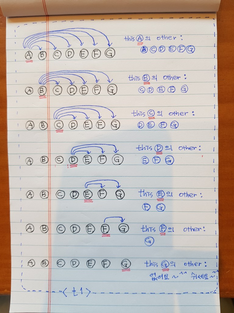 //즉, i가 배열의 마지막 구성요소 일 경우는, j가 생성되지 않아, 아무 일도 일어나지 않고 j 관련 for loop가 끝납니다.